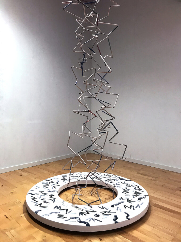 Lars J. Falkenberg er uddannet fra Danmarks Designskole. Han arbejder opfindsomt og udfordrende med skulpturelle abstraktioner i skiftende materialer. Fokus er på det logiske og serielle. Men også på det taktile, ligesom interaktionen med rummet og betragteren spiller en rolle.